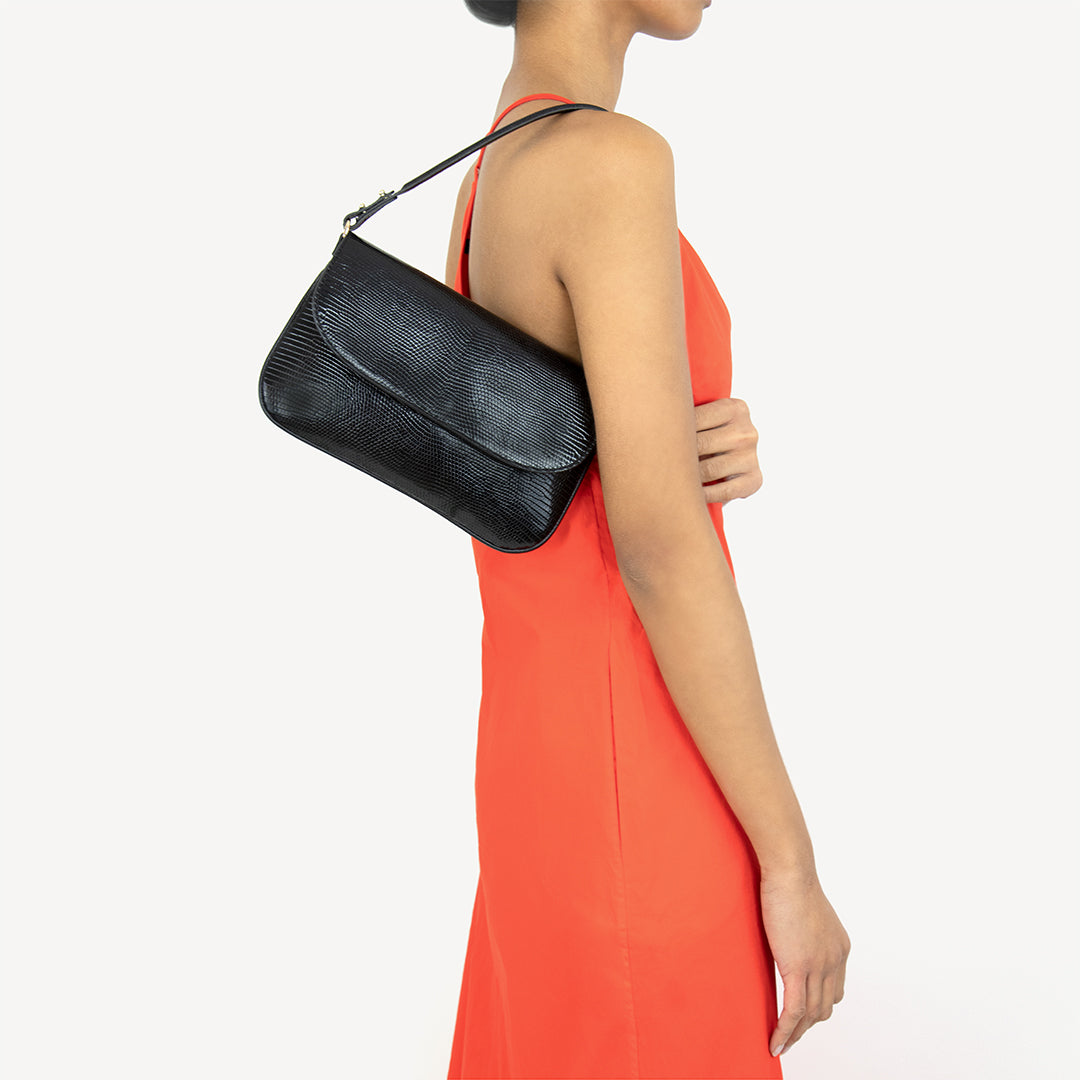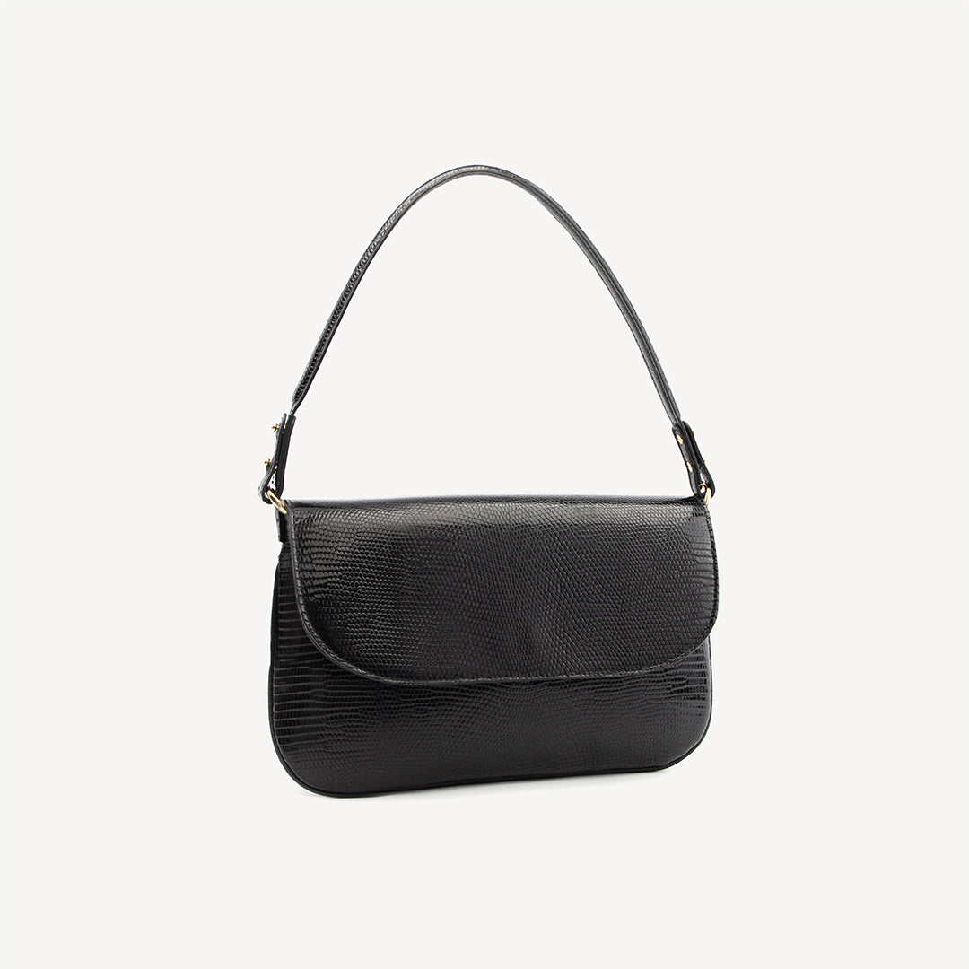 Black baguette bag, Lizard leather. Luisa