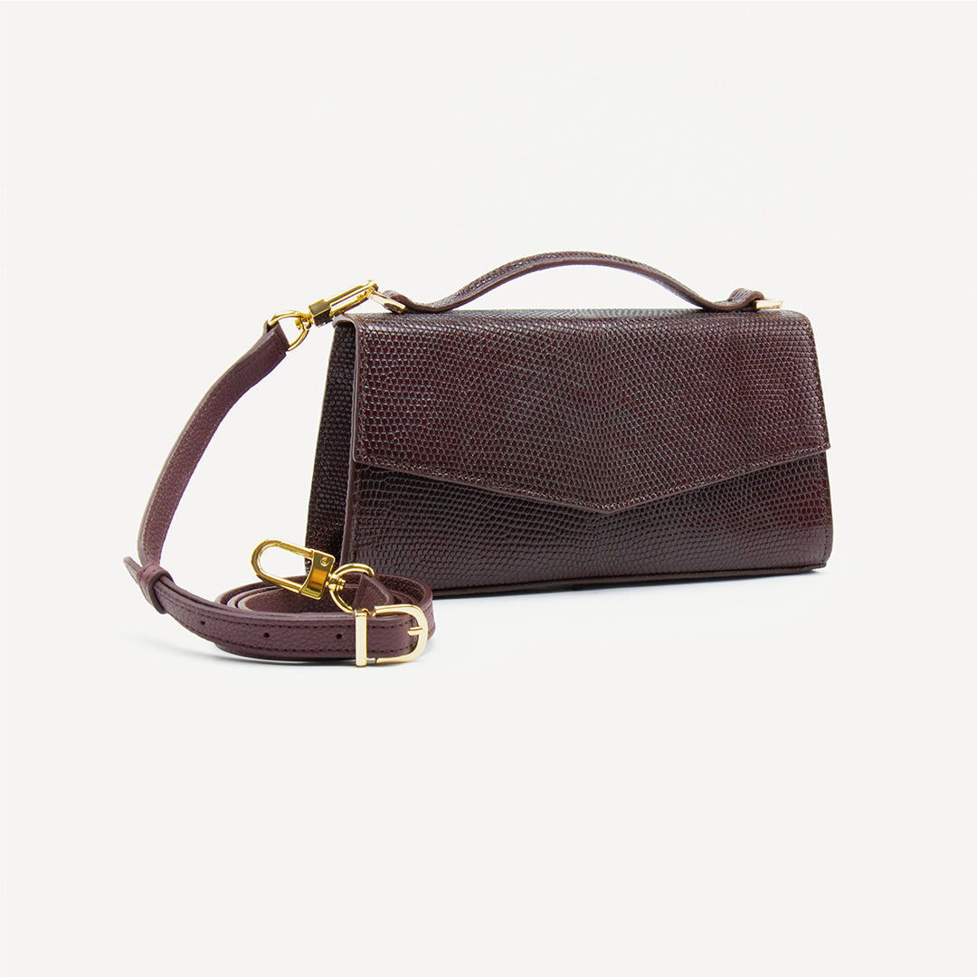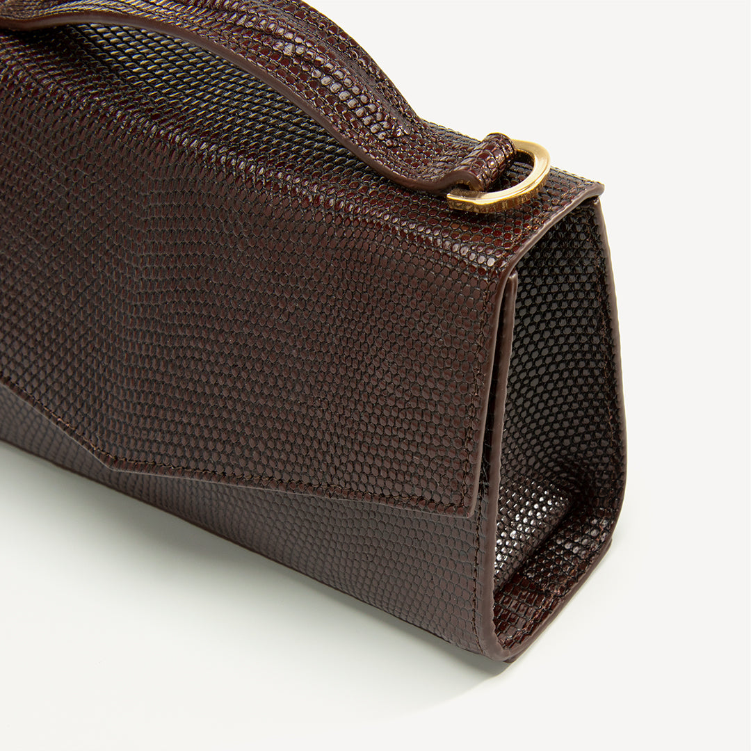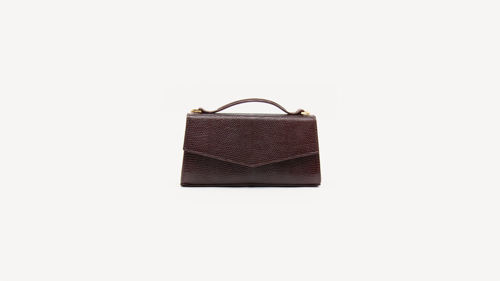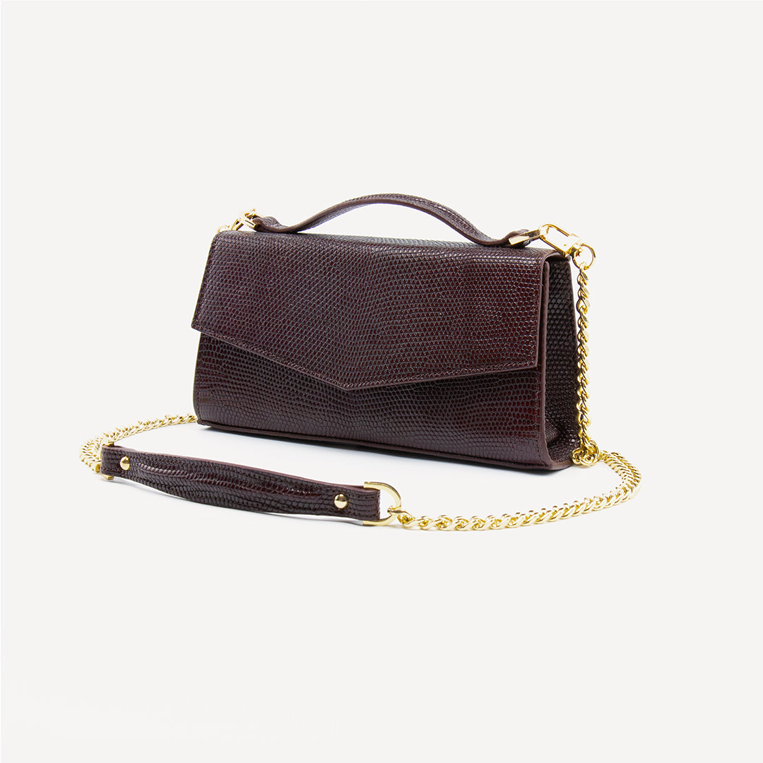 This versatile shape is the perfect companion to take you from day to night: Lizard leather, VINTAGE, gold finish. Use as an elegant top handle or as a crossbody for a more casual look. Also fits perfectly on the hand as a clutch for all occasions. Accommodates all of your essentials including a mobile phone.